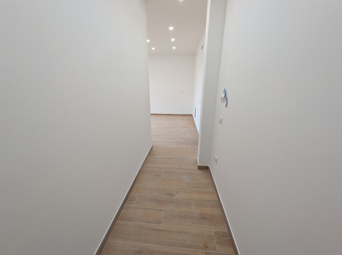 La zona notte è sapientemente separata da un disimpegno, garantendo privacy e tranquillità. Troverai due camere da letto comode, perfette per il riposo, e un bagno elegante dotato di una grande doccia walk-in.